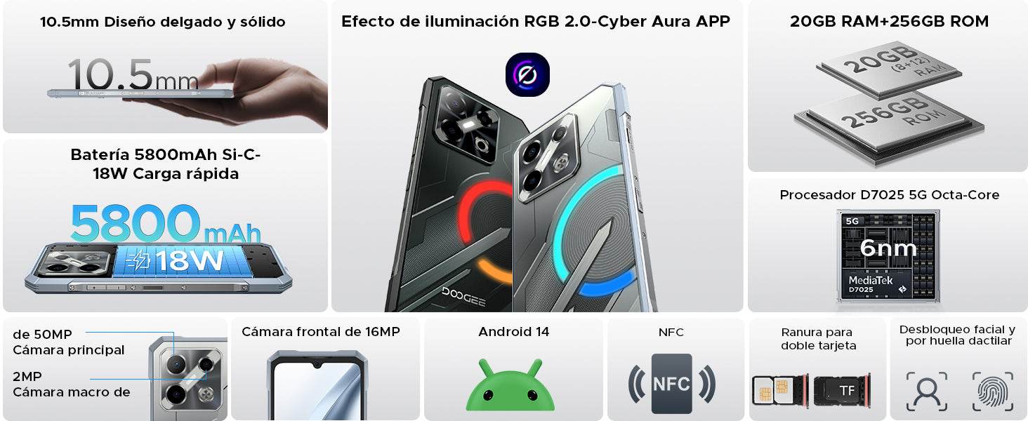 DOOGEE Blade GT Play Móvil Rugerizado 5G Efecto Luz LED Movil Indestructible Andriod 14 Smartphone