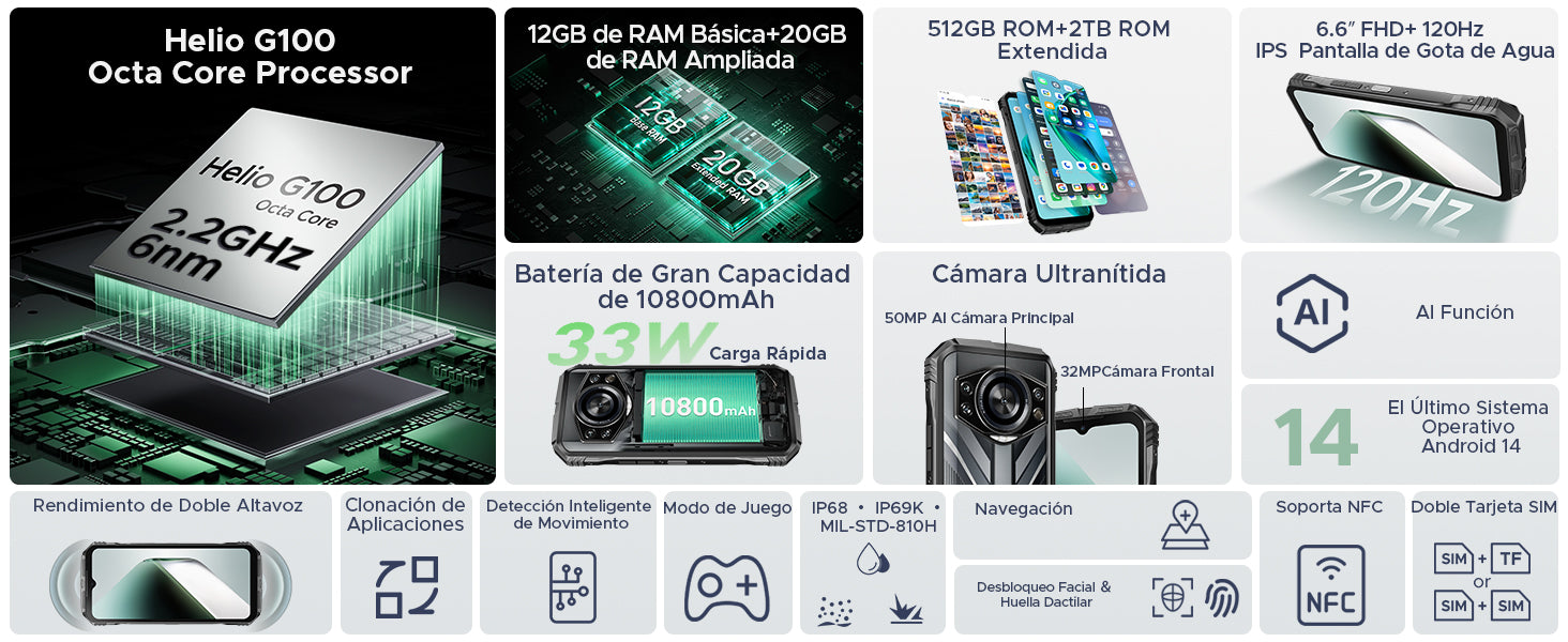 Helio G100 Octa Core 2.2GHz 6nm & Móvil Resistente Android 14: