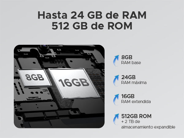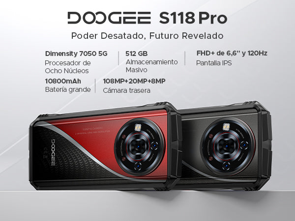 El movil resistente DOOGEE S118 PRO está equipado con un chip 5G de nivel de 6nm MTK7050 y es compatible con LPDDR5, que es más eficiente y tiene un rendimiento más fuerte. Contiene 24GB RAM (8GB+16GB virtuales), lo que le permite experimentar una fluidez y capacidad de respuesta incomparables. Tiene 512GB de espacio de almacenamiento interno y es compatible con tarjetas TF de hasta 2TB de capacidad.Más almacenamiento para tus aplicaciones, fotos y vídeos.
