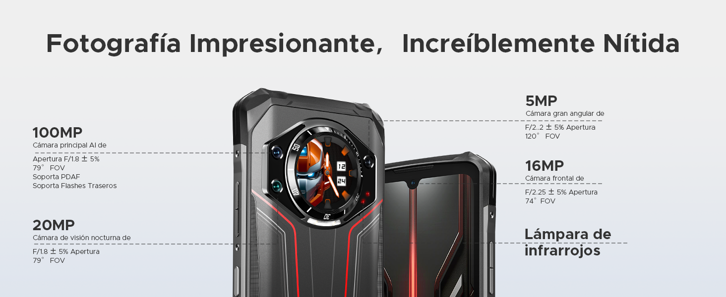 DOOGEE S119 Móvil Resistente está equipado con una pantalla secundaria multifunción de 1.32”, que no solo muestra efectos claros y delicados, sino que también admite una variedad de funciones convenientes, lo que le permite ver rápidamente información importante. La pantalla principal del movil irrompible utiliza una pantalla FHD+ IPS de 6.72”con una resolución de hasta 1080*2408, con un rendimiento de imagen detallado y colores vivos y vivos.