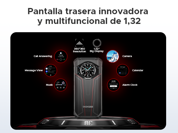 DOOGEE S119 Móvil Resistente está equipado con una pantalla secundaria multifunción de 1.32”, que no solo muestra efectos claros y delicados, sino que también admite una variedad de funciones convenientes, lo que le permite ver rápidamente información importante. La pantalla principal del movil irrompible utiliza una pantalla FHD+ IPS de 6.72”con una resolución de hasta 1080*2408, con un rendimiento de imagen detallado y colores vivos y vivos.