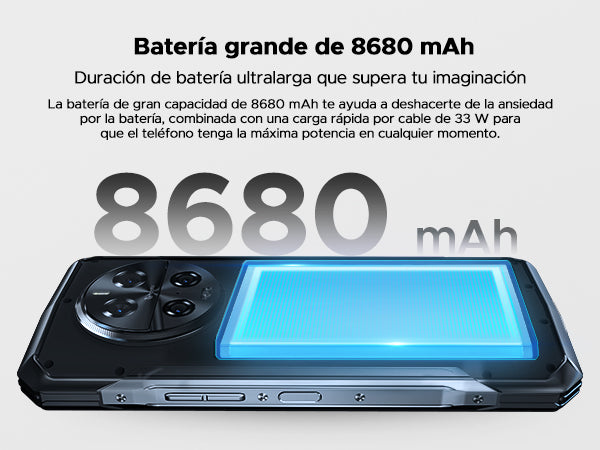 Equipado con 36 GB de RAM (16 GB + hasta 20 GB extendidos) y 512 GB de almacenamiento interno, el teléfono robusto V40 Pro tiene el espacio que necesita para todas sus aplicaciones, fotos y archivos. Este movil irrompible desbloqueado con Android admite almacenamiento expandible hasta 2 TB. Con esta impresionante memoria, el V40 Pro maneja tareas de alta capacidad sin esfuerzo, perfecto para profesionales que necesitan confiabilidad y potencia en un paquete robusto.