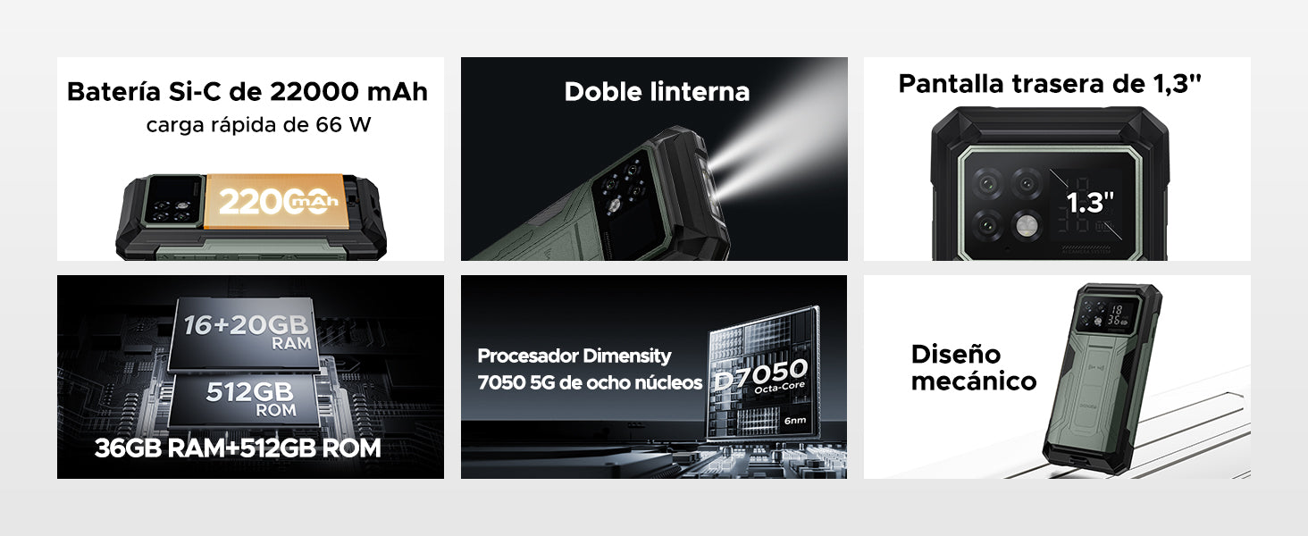 DOOGEE S200 Max Teléfono robusto Dimensity 7050 de 36 GB + 512 GB, 22000 mAh, Android 15, 5G